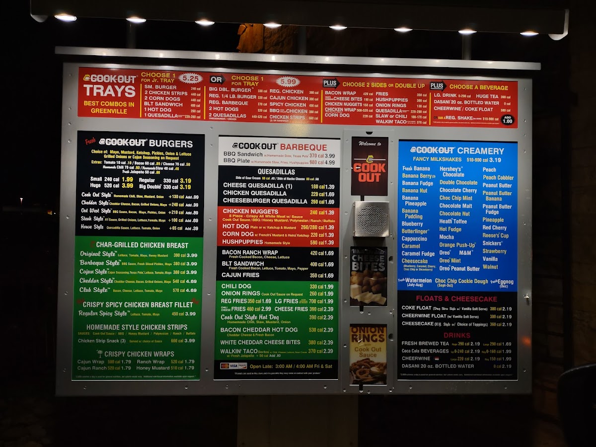 Welcome to Cook Out, a gem of American fast food located in Greenville, SC. Here, the menu offers a delightful array of flavorful options that cater to every craving, from burgers to BBQ chicken and even two hot dogs for the hunger of champions. What truly sets Cook Out apart are their indulgent, fancy milkshakes, with enticing flavors like Peach Cobbler and Banana Pudding.